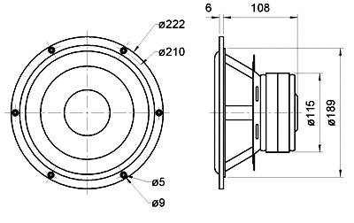 Bassokaiutin 8"/222mm 120/180W 8ohm