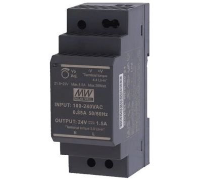 Hakkuriteholähde DIN-kiskoon 24Vdc 1,5A 36W (HDR-30-24)