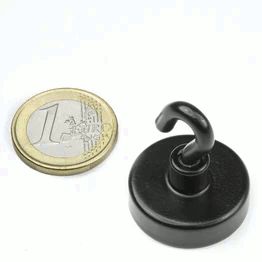 Kestomagneetti kiinnityskoukulla Neodymium N38 25,3x7,3mm musta