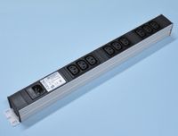 Maadoitettu pistorasiakisko IEC320-kojeliittimillä.