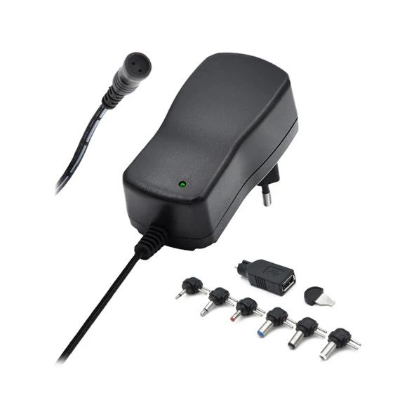 Vaihtopistokkeet:Monoplugi 2,5 mmMonoplugi 3,5 mmDC-pistoke 3,5 x 1,35 mmDC-pistoke 5,0 x 2,1 mmDC-pistoke 5,5 x 1,5 mmDC-pistoke 5,5 x 2,5 mmUSB-A -naarasliitin