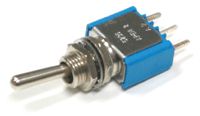 Pienoisvipukytkin mutterikiinnityksellä. Piirilevylle.